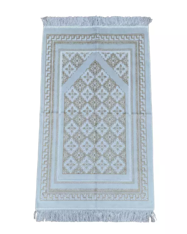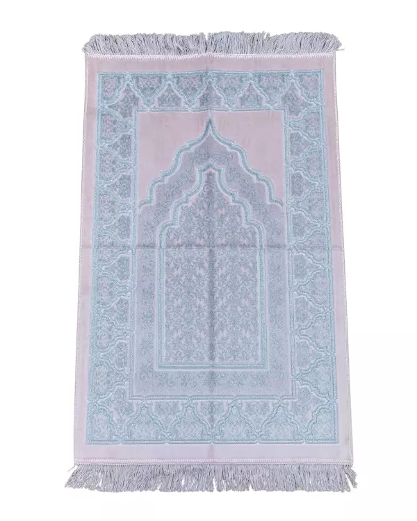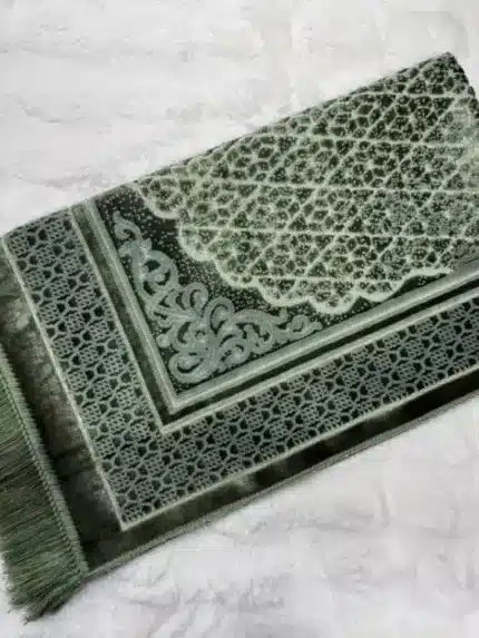 Dies ist ein sehr qualitativer und schöner Gebetsteppich mit glitzernden Fäden, die bei Lichteinfall funkeln. Von der Dicke her ist es etwas dicker als ein gewöhnlicher Gebetsteppich. Es ist schön kuschelig. Sie werden sich einfach in dem Gebetsteppich verlieben und somit auch in das Gebet selbst.