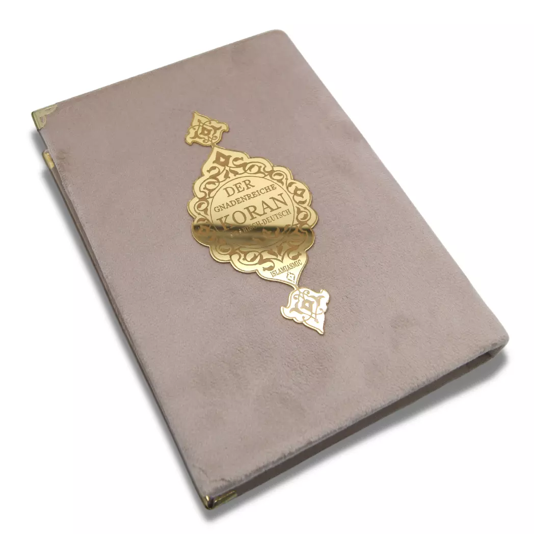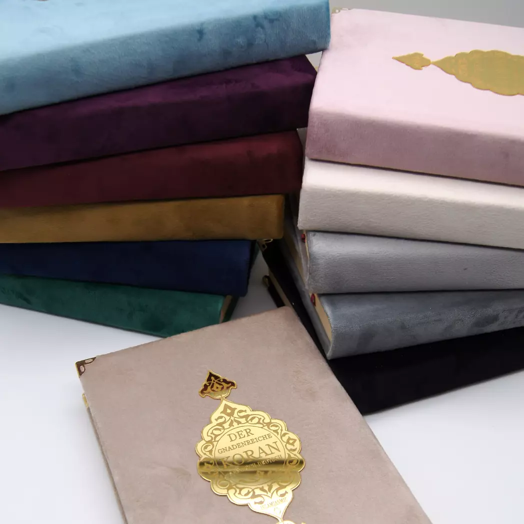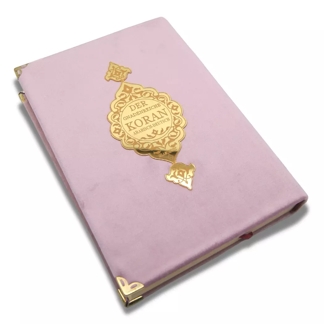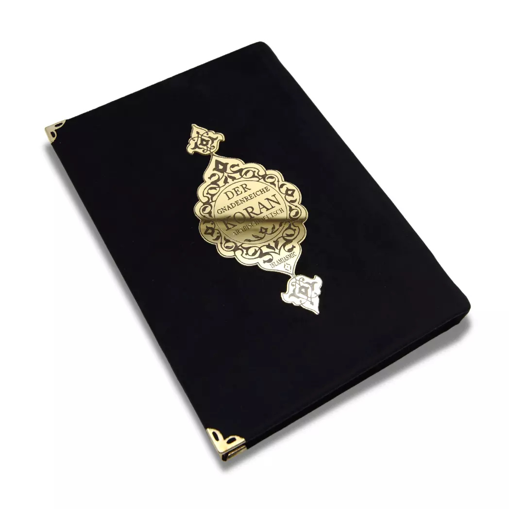 Dieser wunderschöne Koran verbindet den arabischen Originaltext mit der deutschen Übersetzung von Abu-r-Rida Muhammad ibn Ahmad ibn Rassoul. Der edle Samtumschlag mit goldenen Verzierungen ✨ macht dieses Exemplar zu etwas ganz Besonderem.
