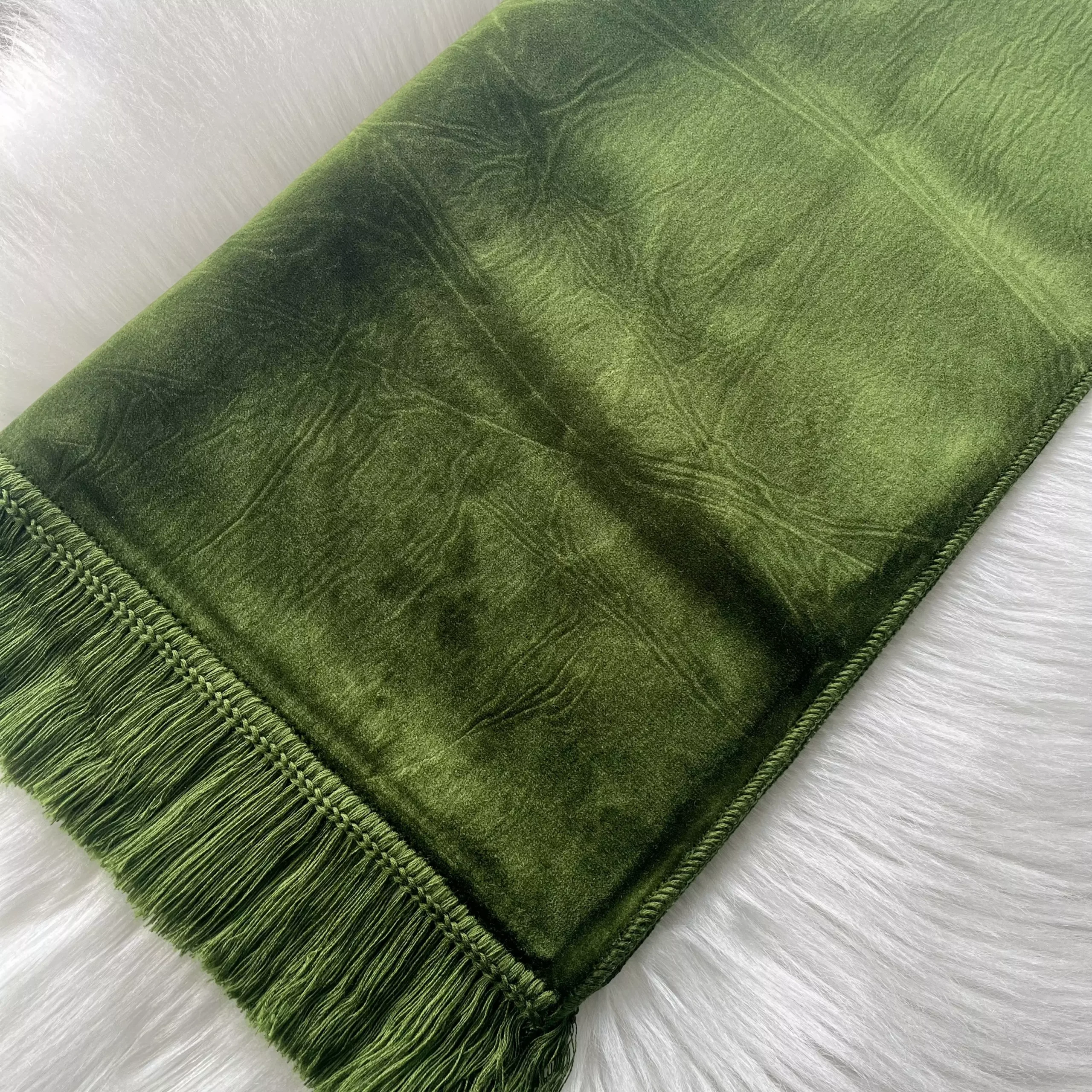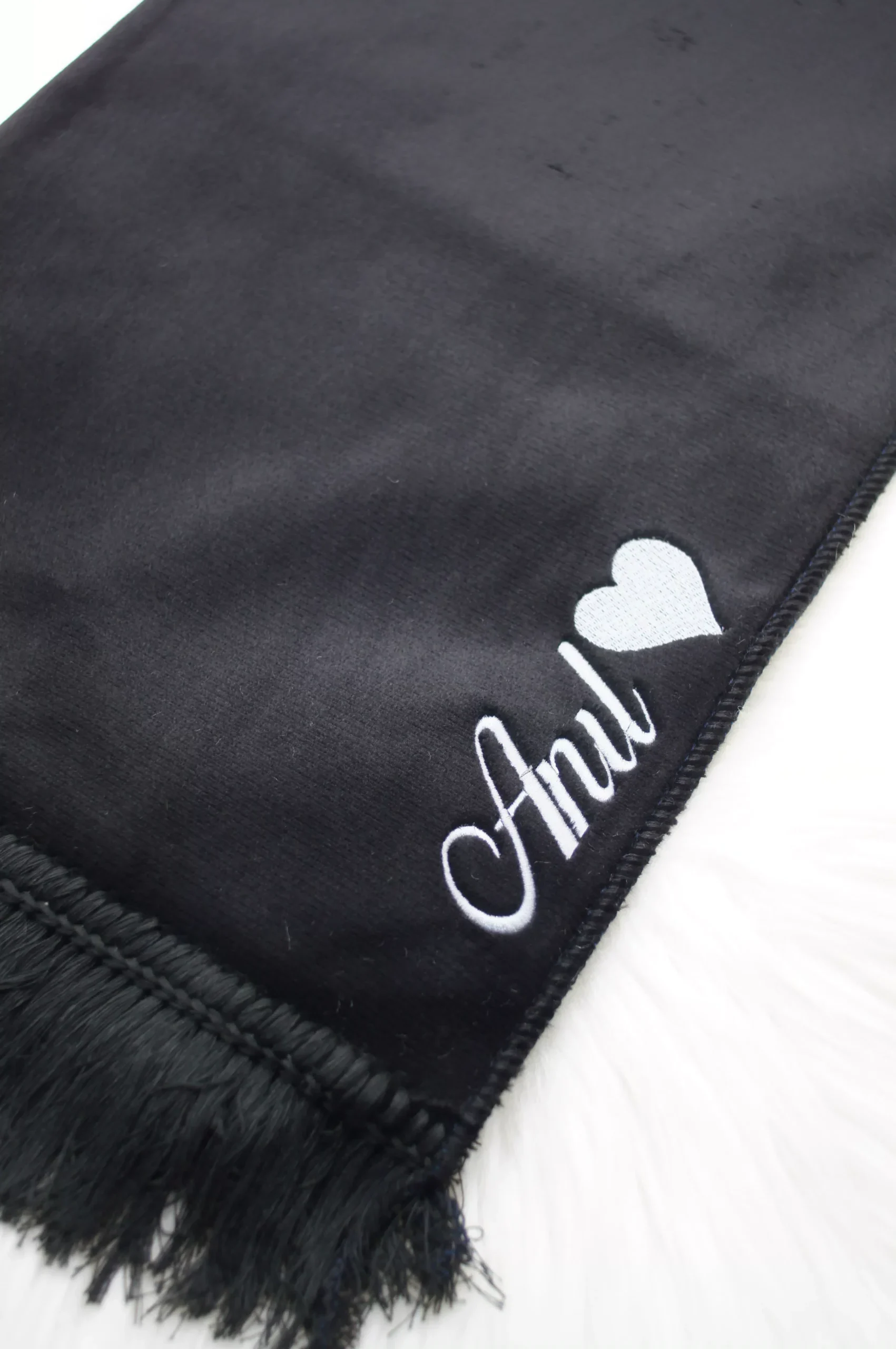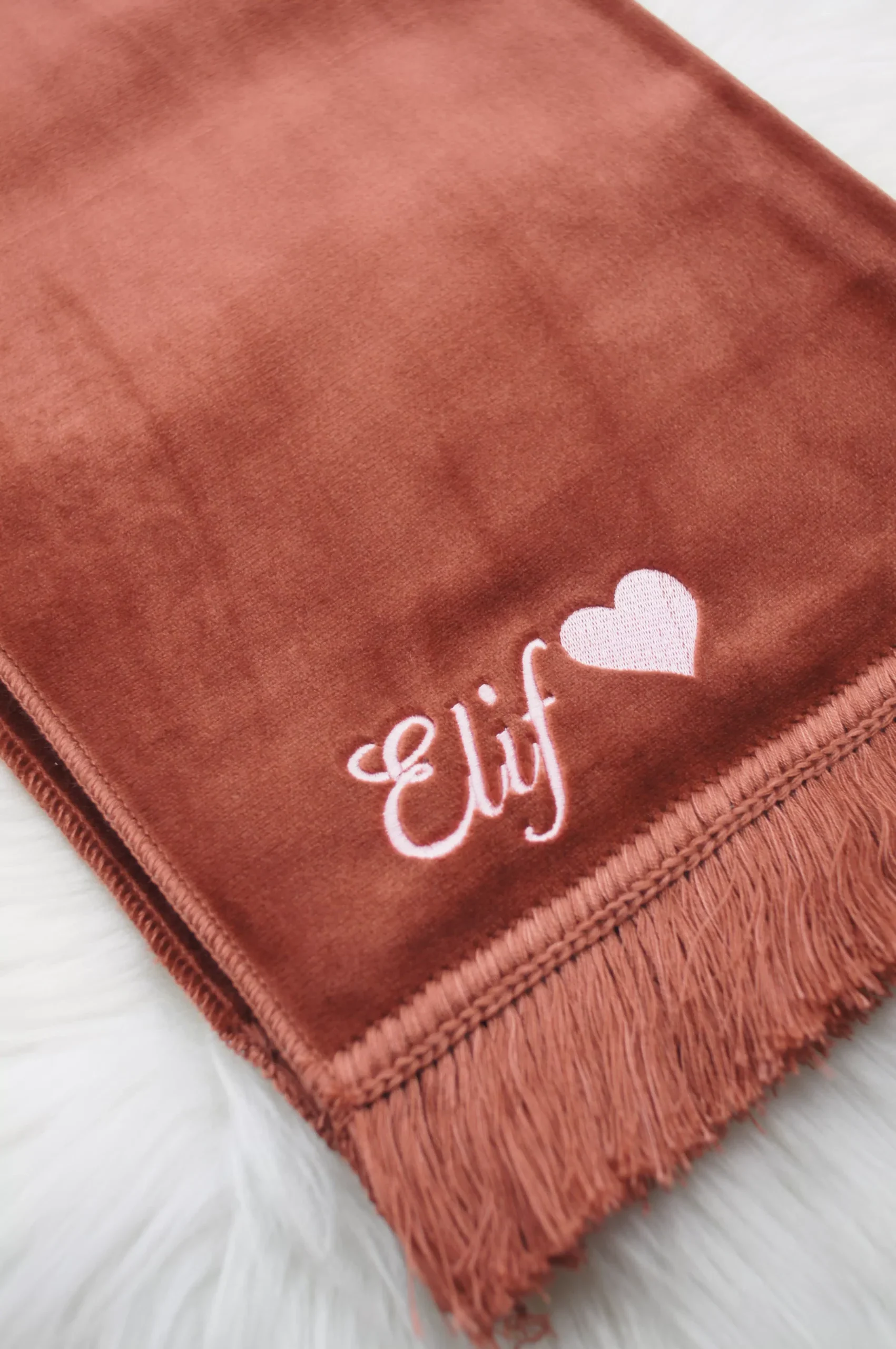 Dieser personalisierte Gebetsteppich mit Namen ist bewusst einfarbig und musterlos gestaltet, um ein konzentriertes Gebet ohne Ablenkung zu ermöglichen.