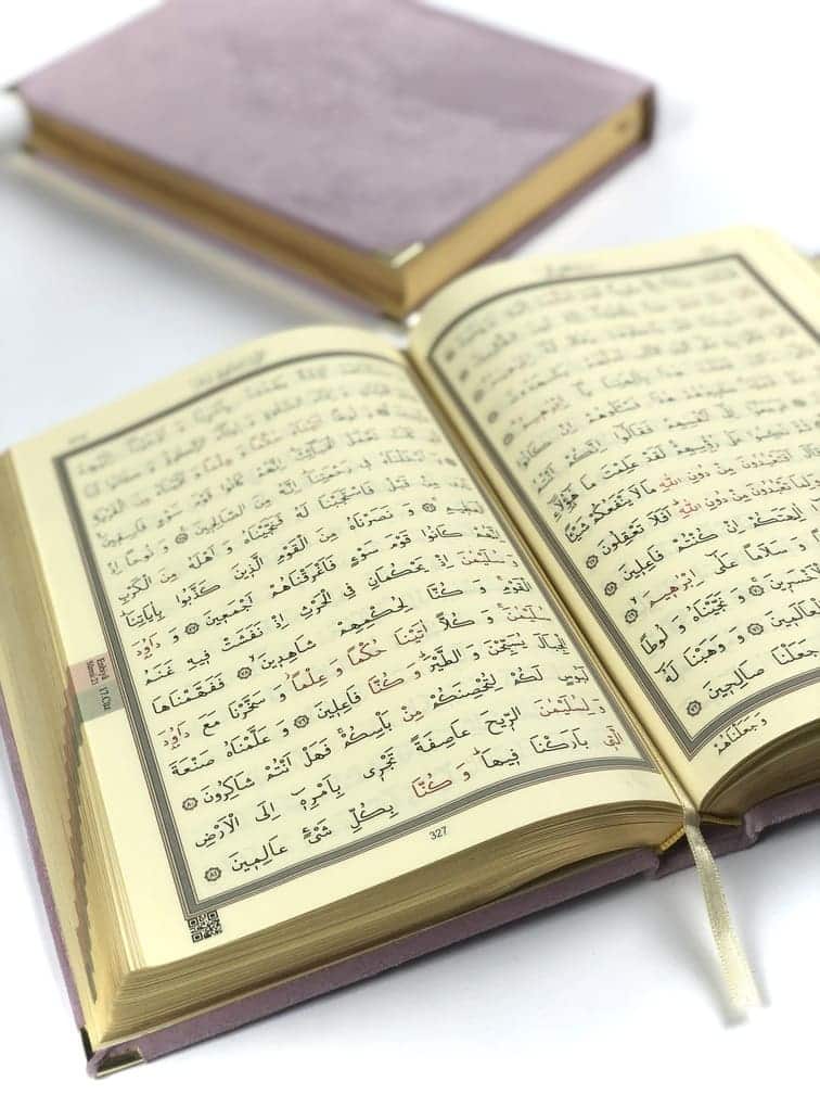 Der Samtkoran arabisch mit Ahmet Hüsrev-Schrift ist ein samtbezogener Koran auf arabisch. Es handelt sich um den kompletten Koran. Die Schriftart ist Ahmet Hüsrev. Der Koran ist in verschiedenen Größen und Farben verfügbar.