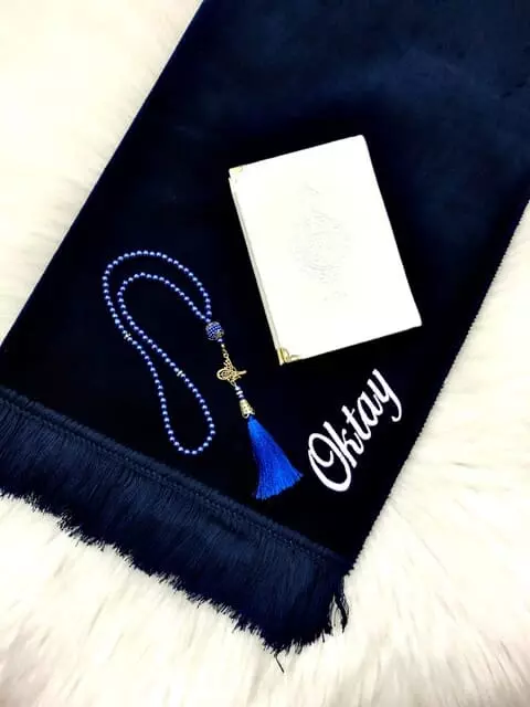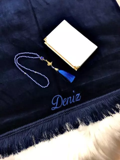 Dieser personalisierte Gebetsteppich mit Namen ist bewusst einfarbig und musterlos gestaltet, um ein konzentriertes Gebet ohne Ablenkung zu ermöglichen.
