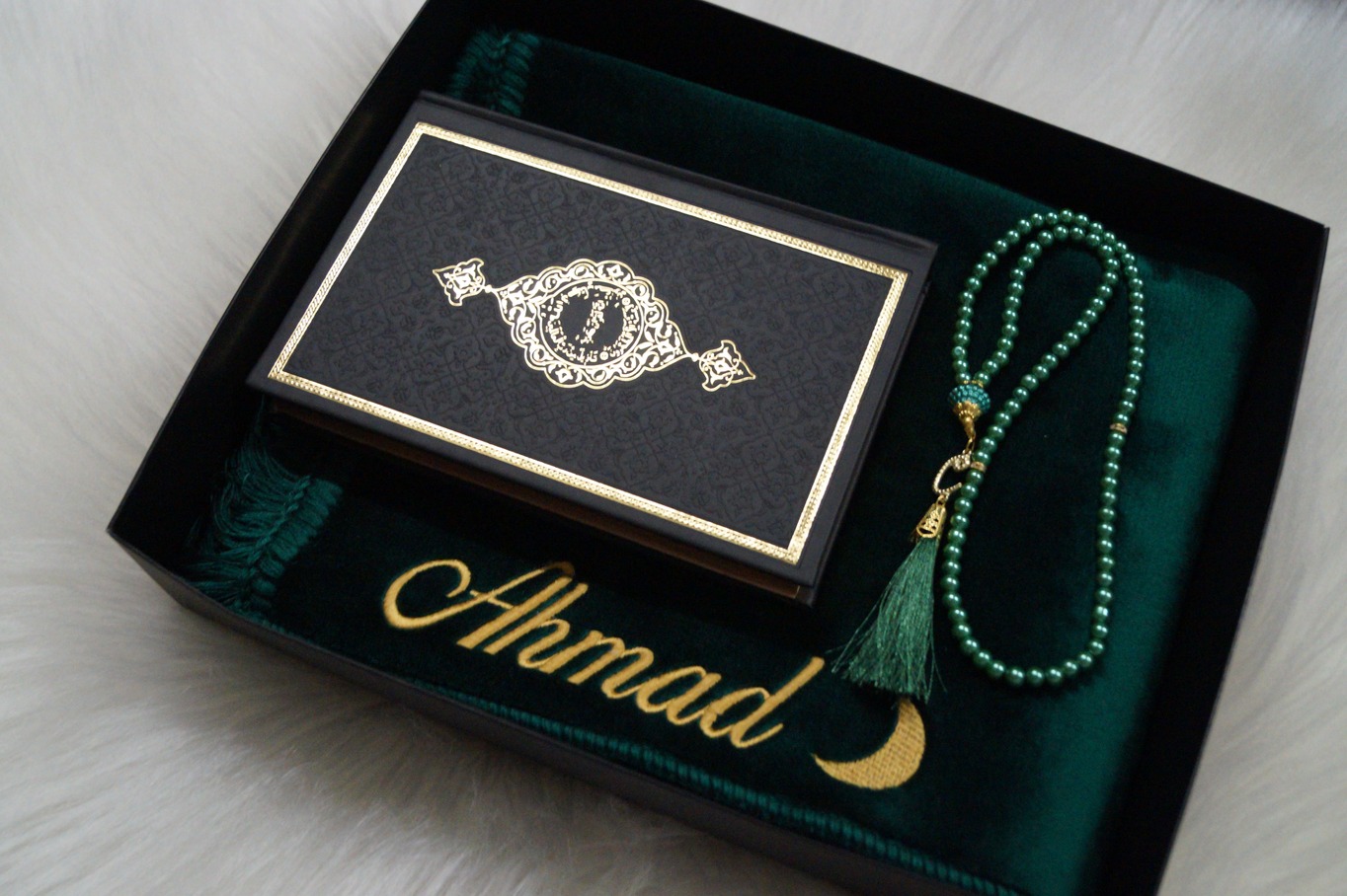 Personalisierter Gebetsteppich mit Namen Set– einfarbig & musterlos